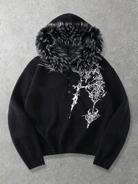Goth Herren Lässig Muster Patchwork Fellbesatz Kapuzenpullover, Herbst/Winter