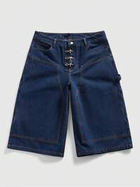 Grunge Punk Herren Lässig gewaschene Weit Geschnittene Caprihose
