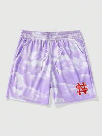 Street Life Herren Sommer Lässig Strand Urlaub Wolken- & Buchstaben-Muster Shorts mit Kordelzug Taille