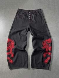 Herren Jeans mit weitem Bein, Kontrastfarben, fünfzackiger Stern Stickerei, personalisiert