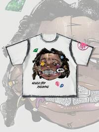 Street Life Herren Lässig T-Shirt mit künstlerischem Porträt Grafik-Muster, Kurzarm