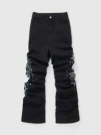 Herren Jeans mit geometrischem Strass-Tascheneinsatz, weites Bein, locker geschnitten