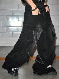 Goth Herren Patchwork Leder Taschen Loose Relaxed Schlagjeans