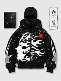 Street Life Herren Lässig Stern Muster Tasche Kordelzug Reißverschluss Kapuzen Sweatshirt, Herbst, Langarm Oberteil