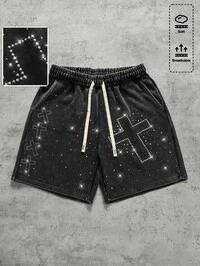 Goth Herren Lässig Mode Street Cross & Buchstaben Muster Kordelzug Taille Shorts, Sommer