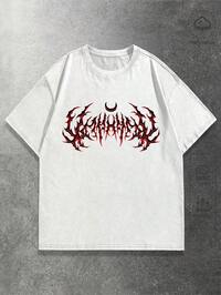 Goth Herren Rundhals Lässig Kurzarm T-Shirt mit Buchstaben- und Knochen-Muster