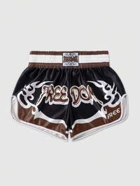 Anime Herren Buchstaben- & Drachen-Muster Shorts mit elastischem Bund, locker geschnitten, Lässig Boxershorts