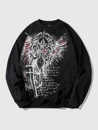 Herren Gothic Kreuz Muster Waffelpullover, geeignet für den täglichen Gebrauch, Herbst/Winter