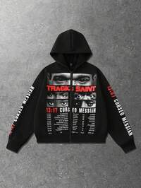 Street Life Herren Kapuzen-Reißverschluss-Sweatshirt mit Portrait- und Buchstaben-Muster, Langarm