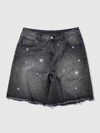 Herren modische schwarze personalisierte Denim Shorts mit Strass