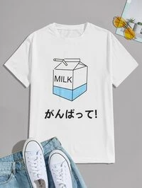 Anime Herren T-Shirt mit japanischen Buchstaben & Grafik, Schule, 2000er Jahre Stil