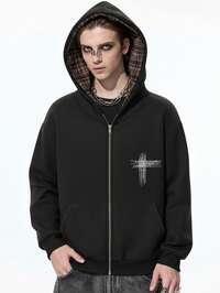 Goth Kapuzenpullover mit Reißverschluss und Kreuz-Print für Herren