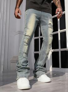 Street Life Herren schmal zulaufende Jeans mit Diamantmuster und Flares, Streetstyle