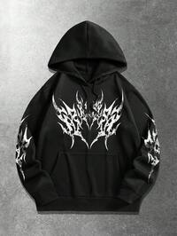 Grunge Punk Herren lässiges, locker geschnittenes Hoodie Sweatshirt mit grafischem Aufdruck für Herbst/Winter