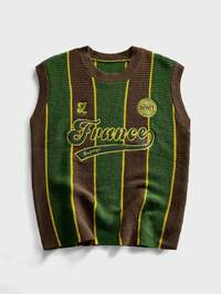 Prep Herren Lässig Farbblock gestreifter Buchstaben Muster Pullover, Herbst/Winter