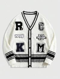 Herren Buchstaben Jacquard Strickjacke, Retro Streetwear