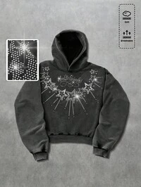 Grunge Punk Herren Glitzer Buchstaben & Stern Diamant gewaschener Vintage Hoodie, Herbst