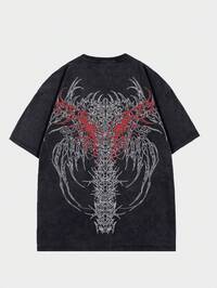 Goth Herren Lässiges, modisches Streetwear T-Shirt mit Slogan-Muster, Kurzarm, Schwarz, Sommer