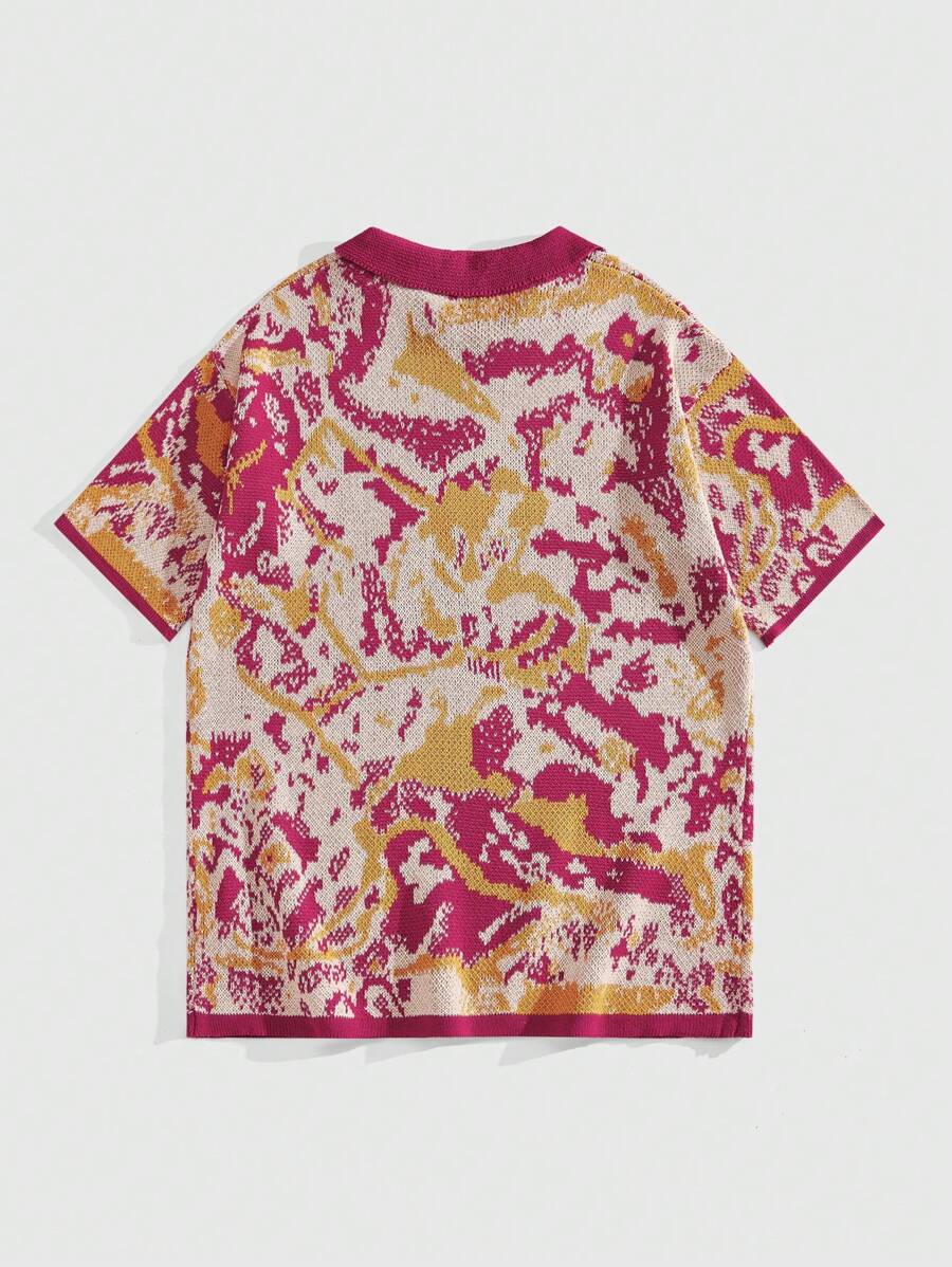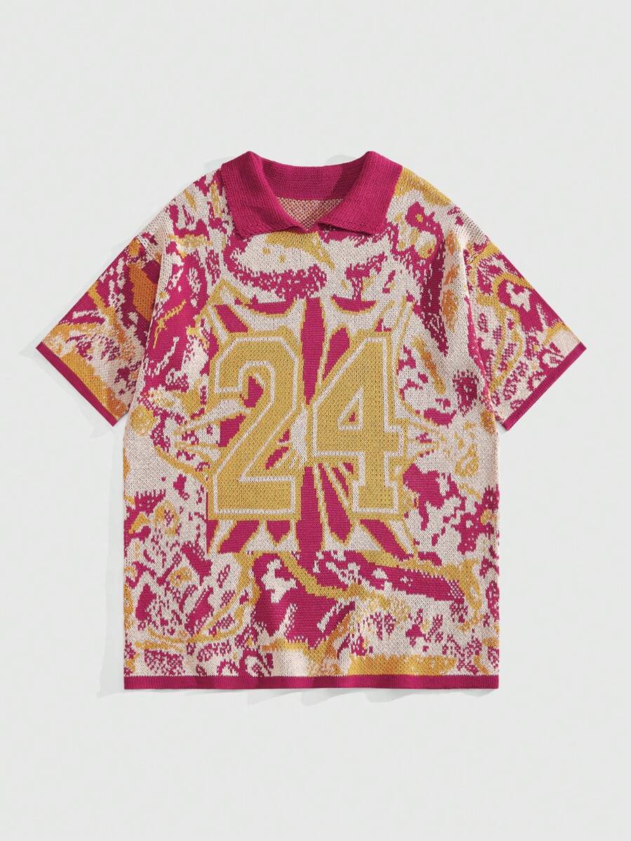 Prep Herren Polokragen Jacquard Nummer Muster Kurzarm Lässig Hemd, geeignet für Frühling/Sommer