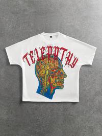 Goth Herren lässiges, locker geschnittenes T-Shirt mit Slogan- und Figurenprint in Weiß, modischer Street-Style, geeignet für Frühling & Herbst, Valentinstag