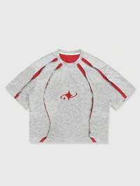Prep Herren Lässig Fußball Kontrast Farbdruck Kurzarm T-Shirt