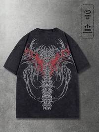 Black Jack X ROMWE Herren Vintage Washed T-Shirt mit japanischem Grafikdruck, Kurzarm