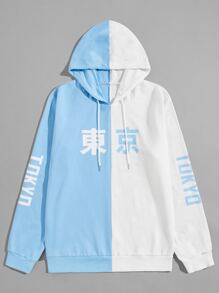 Männer Hoodie mit japanisch Schriftzeichen Grafik, Tunnelzug