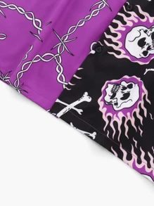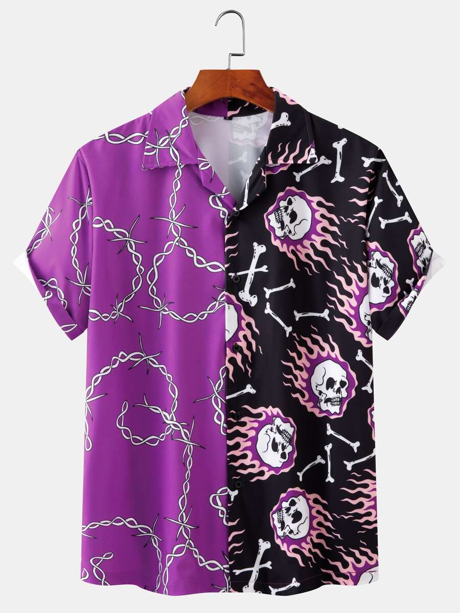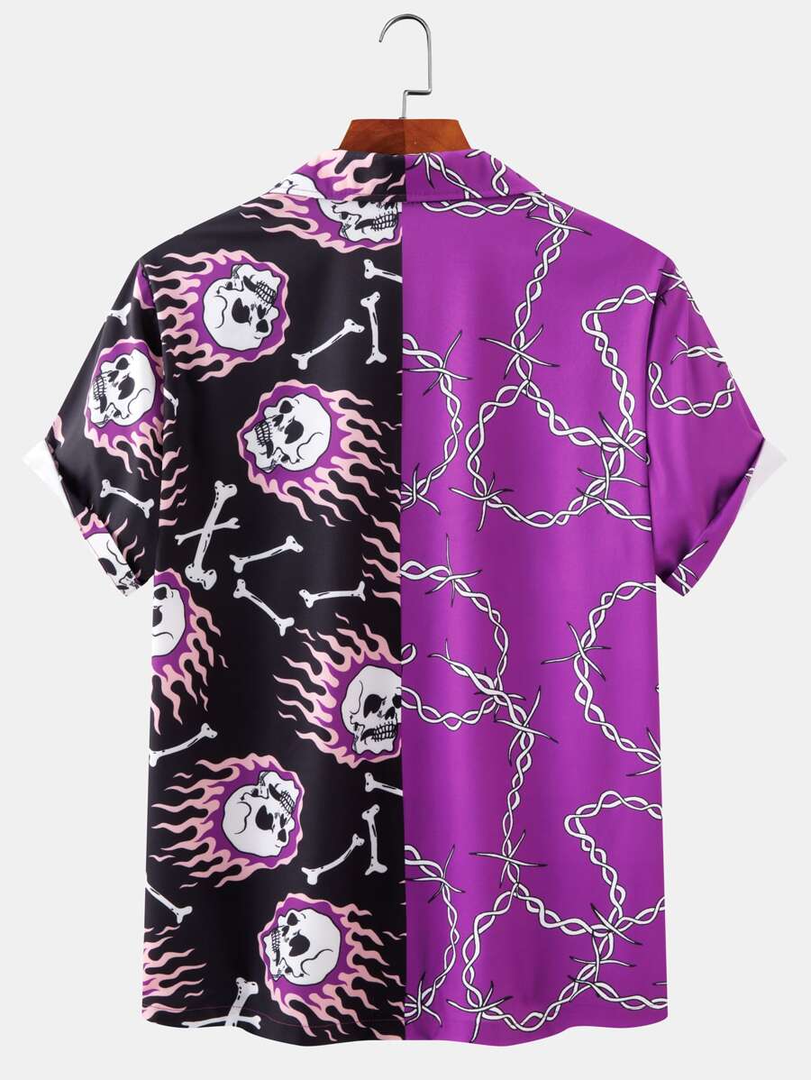 Gespleißtes Hemd mit Knöpfen vorn & Schädel & Kette Muster