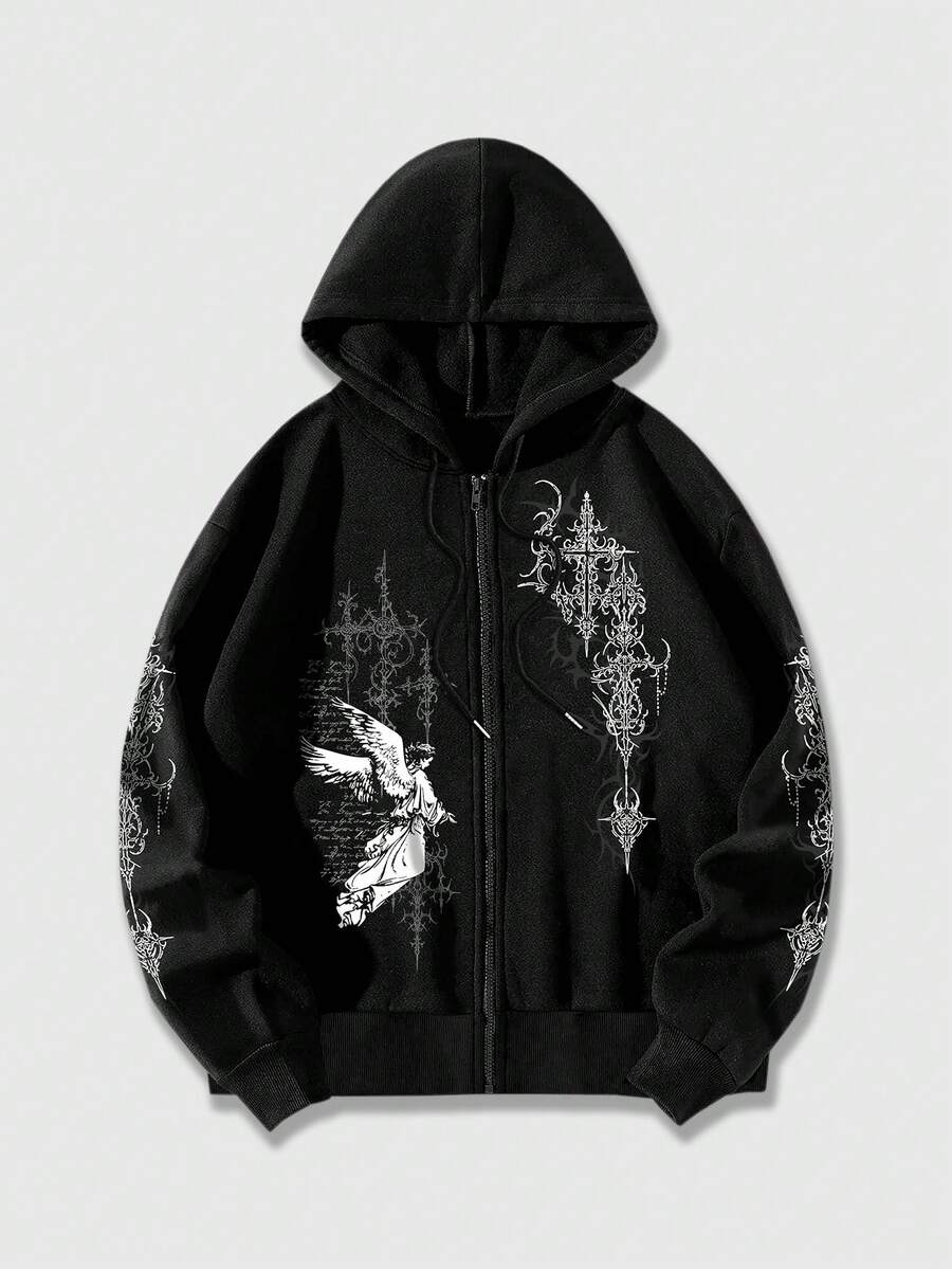 Herren Lässig Engel Muster Hoodie Sweatshirt, Herbst/Winter