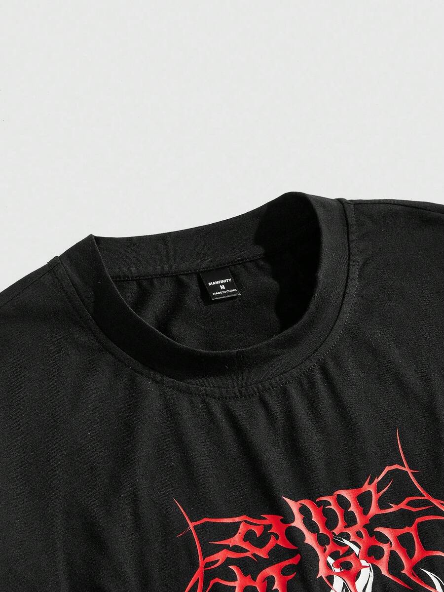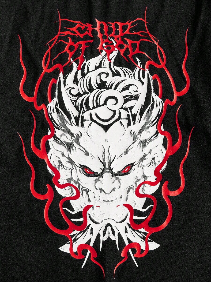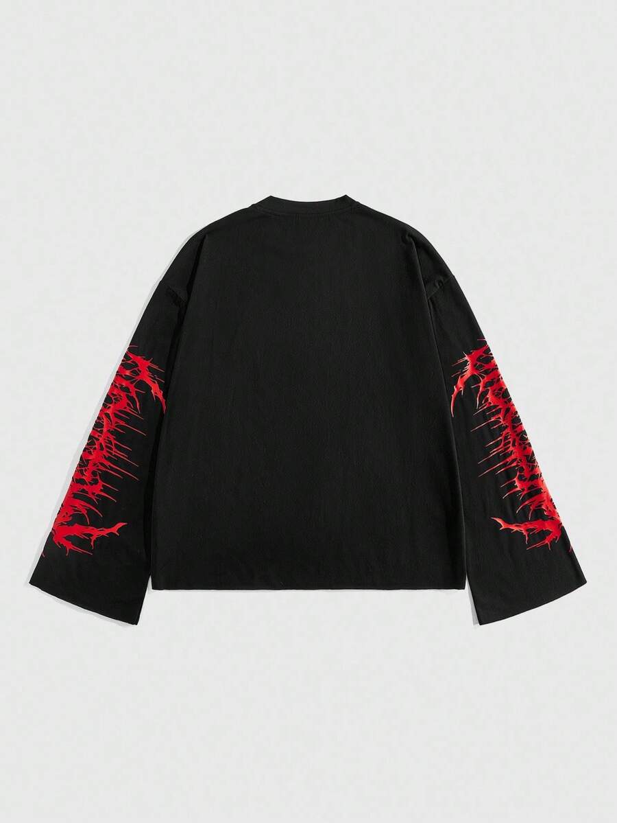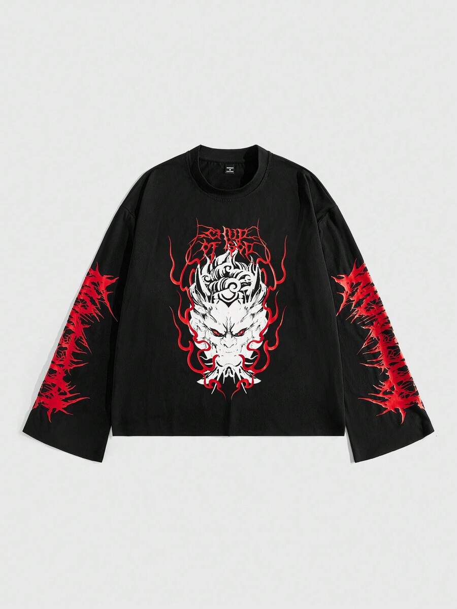 Herren Lässig Dunkel Anime Grafik Rundhals Langarm T-Shirt, Emo, 2000er Jahre Stil