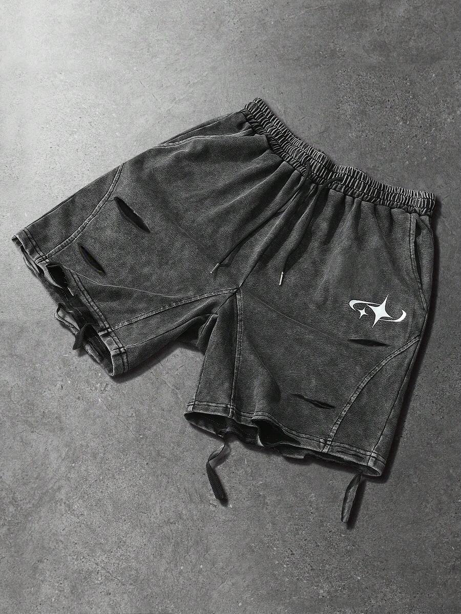 Herren Lässig Destroyed Schneeflocken Muster Shorts