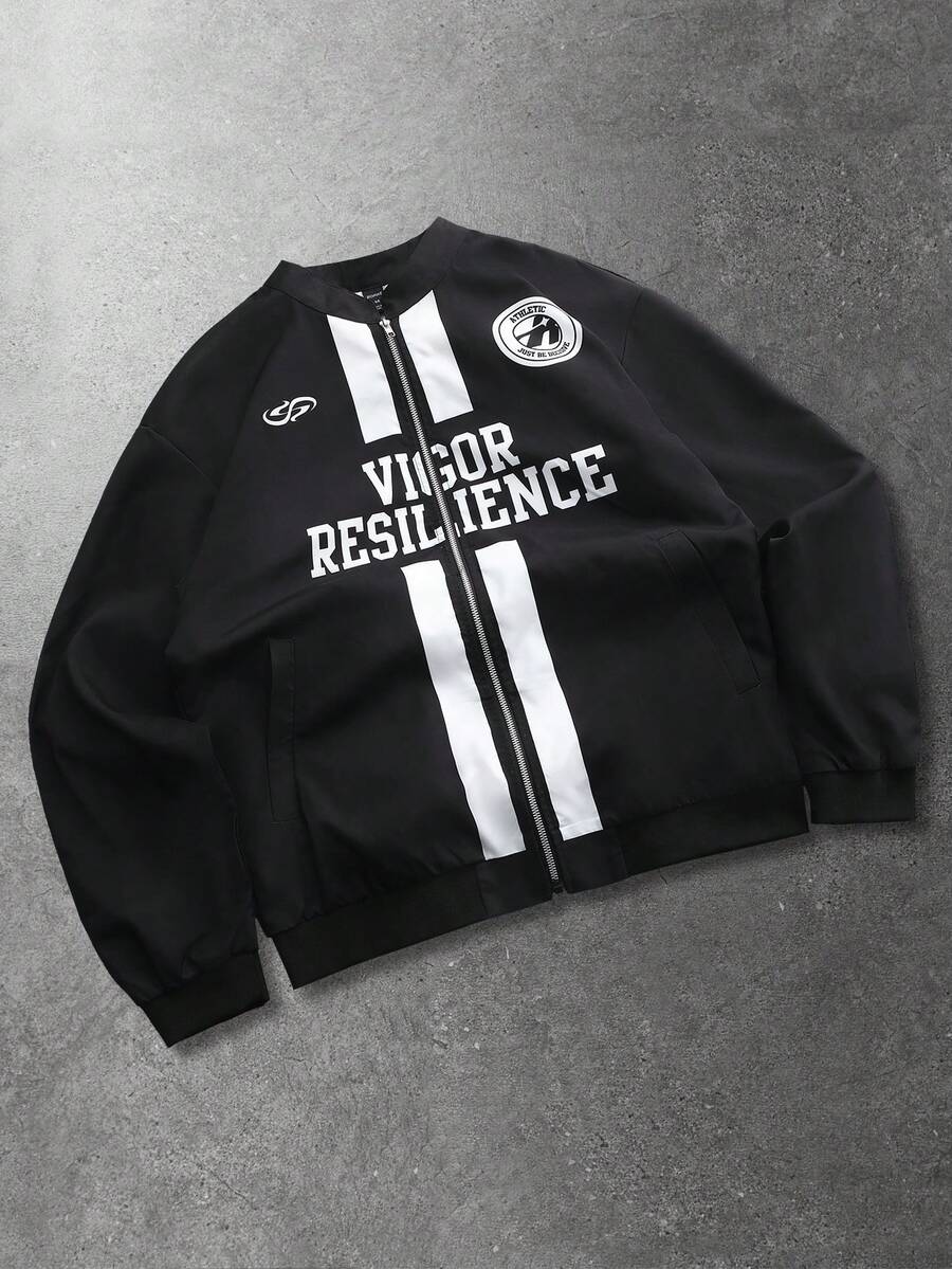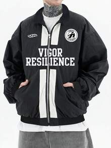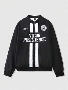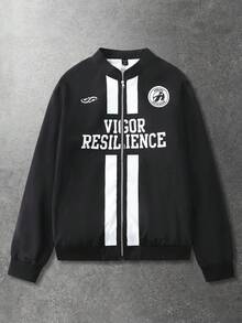 Herren Lässig Jacke mit englischem Aufdruck, modischer Streetstyle amerikanisch sportlich, Frühling/Herbst