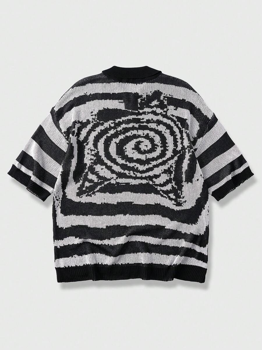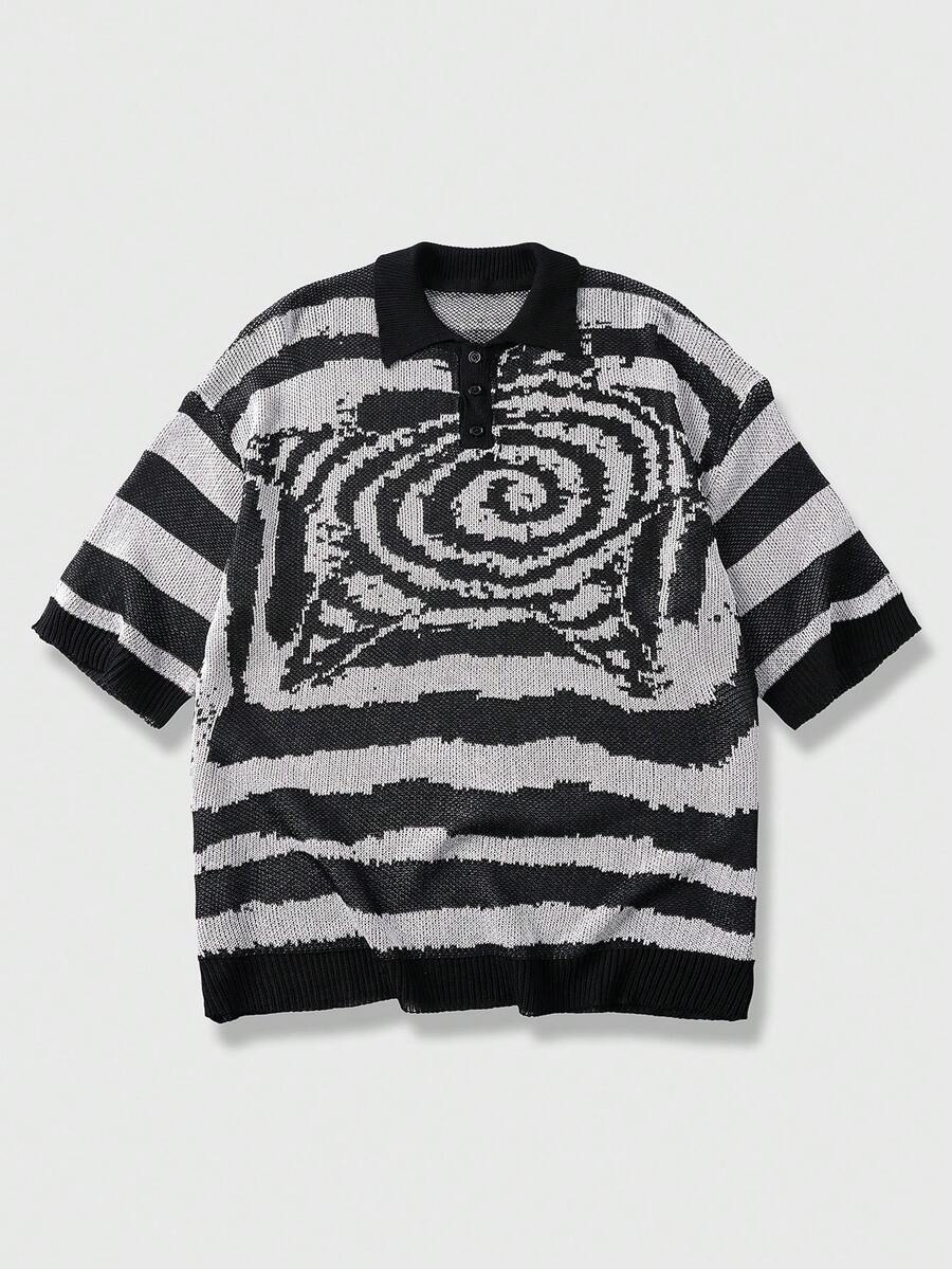 Herren Lässig Everyday gestreiftes Viertelknopf Kurzarm Strickoberteil