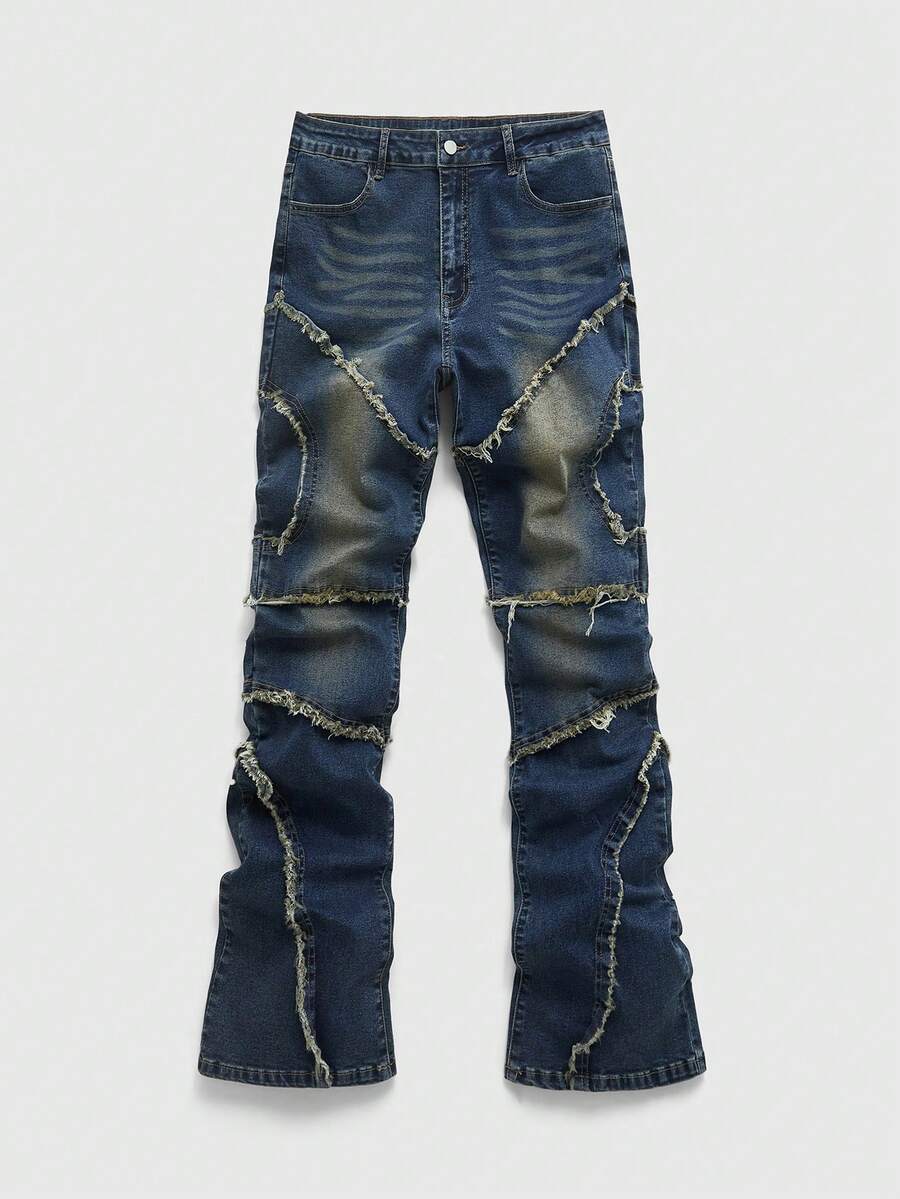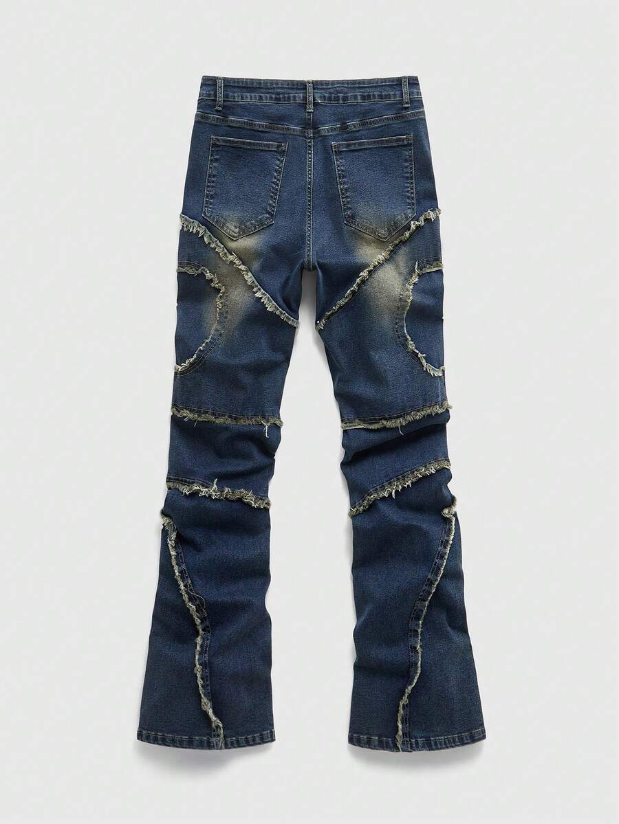 Herren Lässig Everyday Verwaschen Ausgefranster Saum Geschichtete Schräge Tasche Weites Bein Jeans