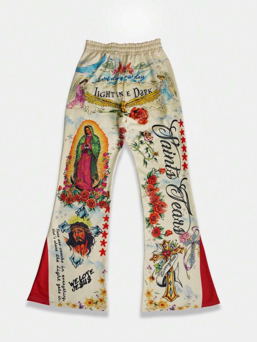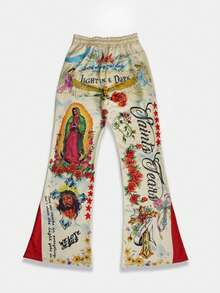 Herren lässige, modische Streetwear Jesus, Jungfrau Maria, Kreuz, Blume Muster Schlupfhose mit Kordelzug, Partnerlook