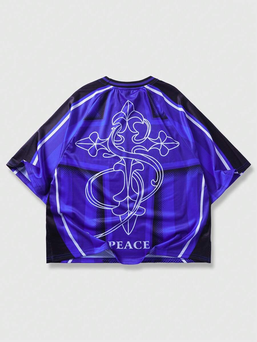 Herren Lässig Rundhals T-Shirt mit Buchstaben- und Zahlen-Muster, Kurzarm