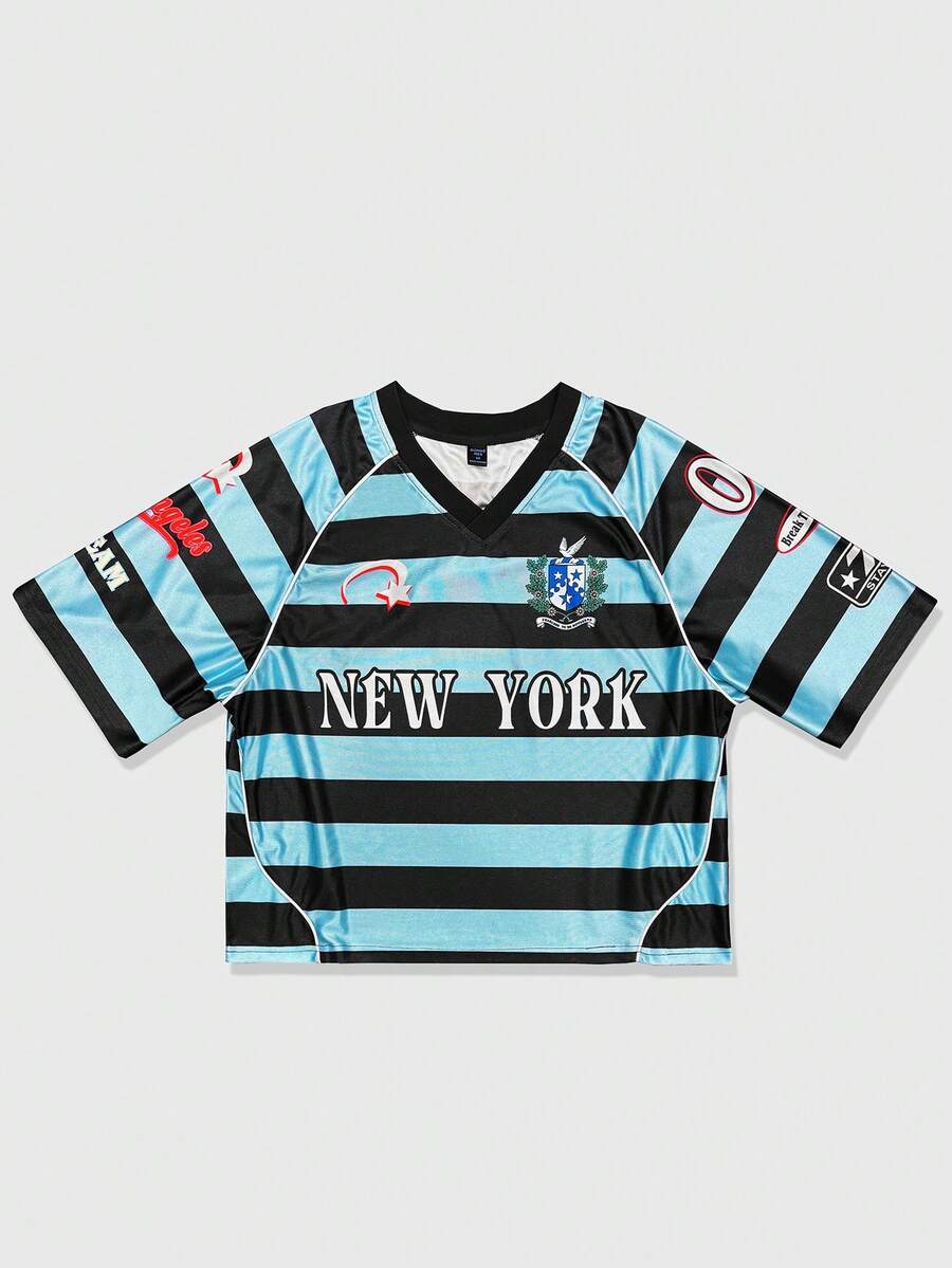Herren Lässig gestreiftes T-Shirt mit Buchstaben-Muster, Sommer