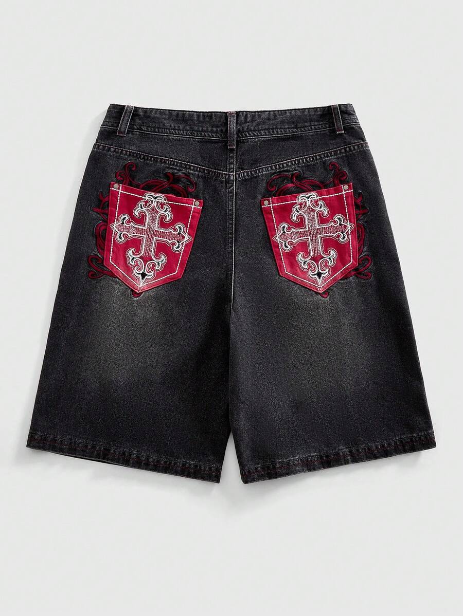 Herren Loose Fit Denim Shorts mit gesticktem Muster