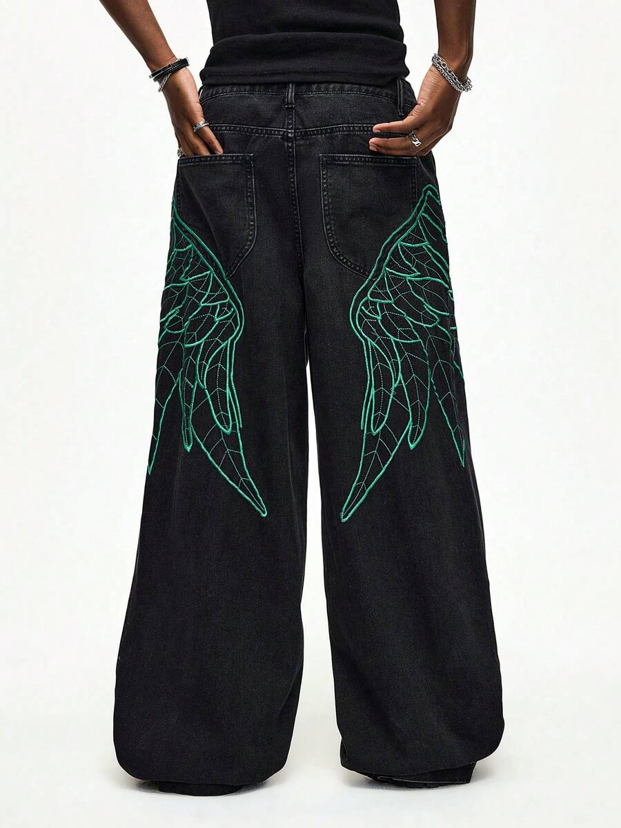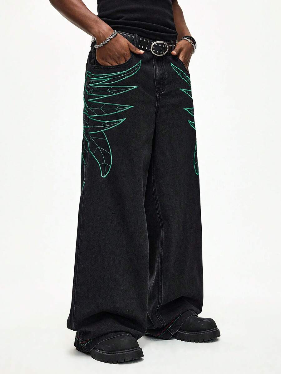 Herren Mode Loose Fit vielseitige bestickte Taschen Jeans, Freizeitkleidung