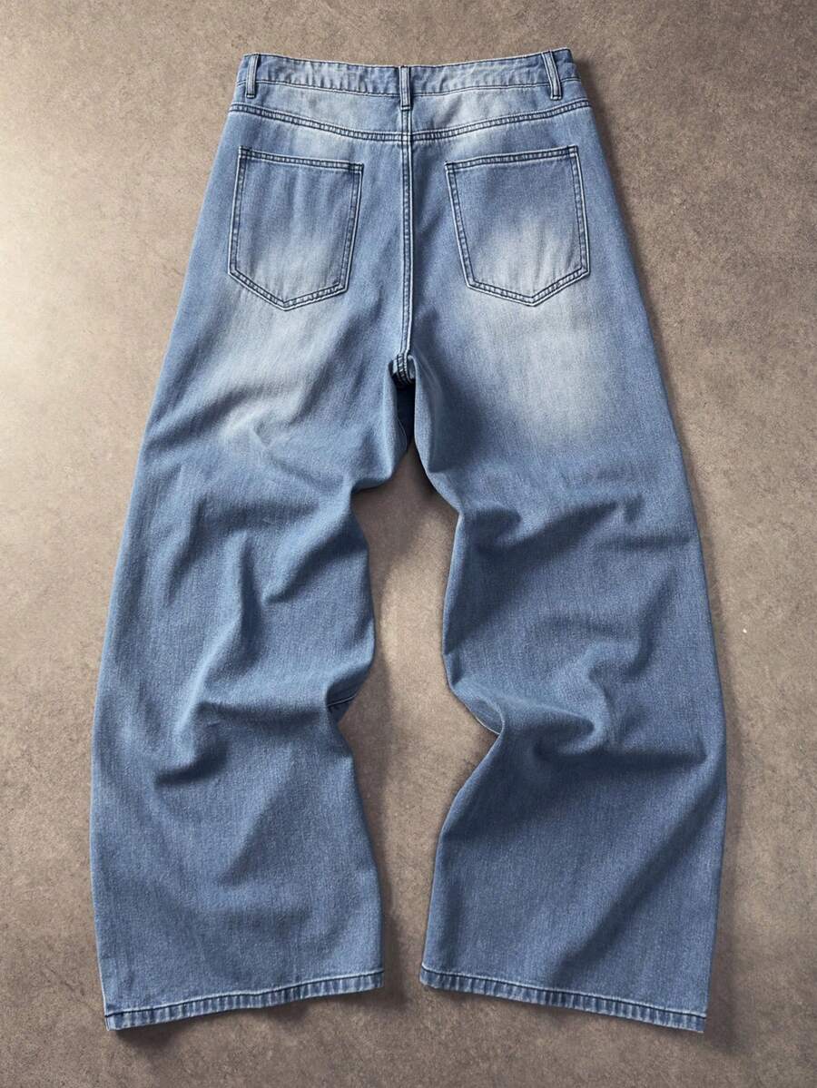 Herren Jeans mit weitem Bein, locker geschnitten, mit floraler Stickerei auf der Tasche