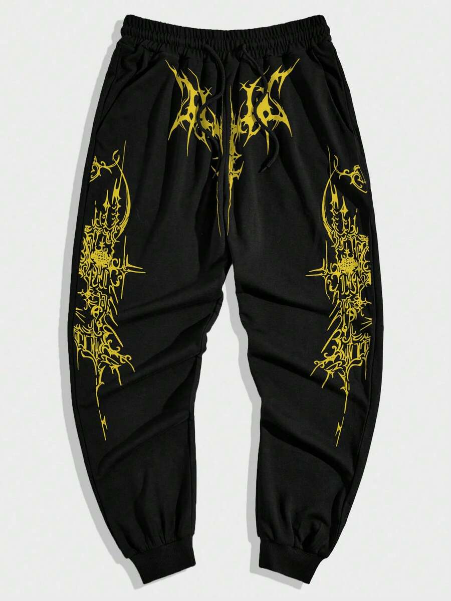 Herren Gothic Muster Jogginghose mit Kordelzug und Taschen