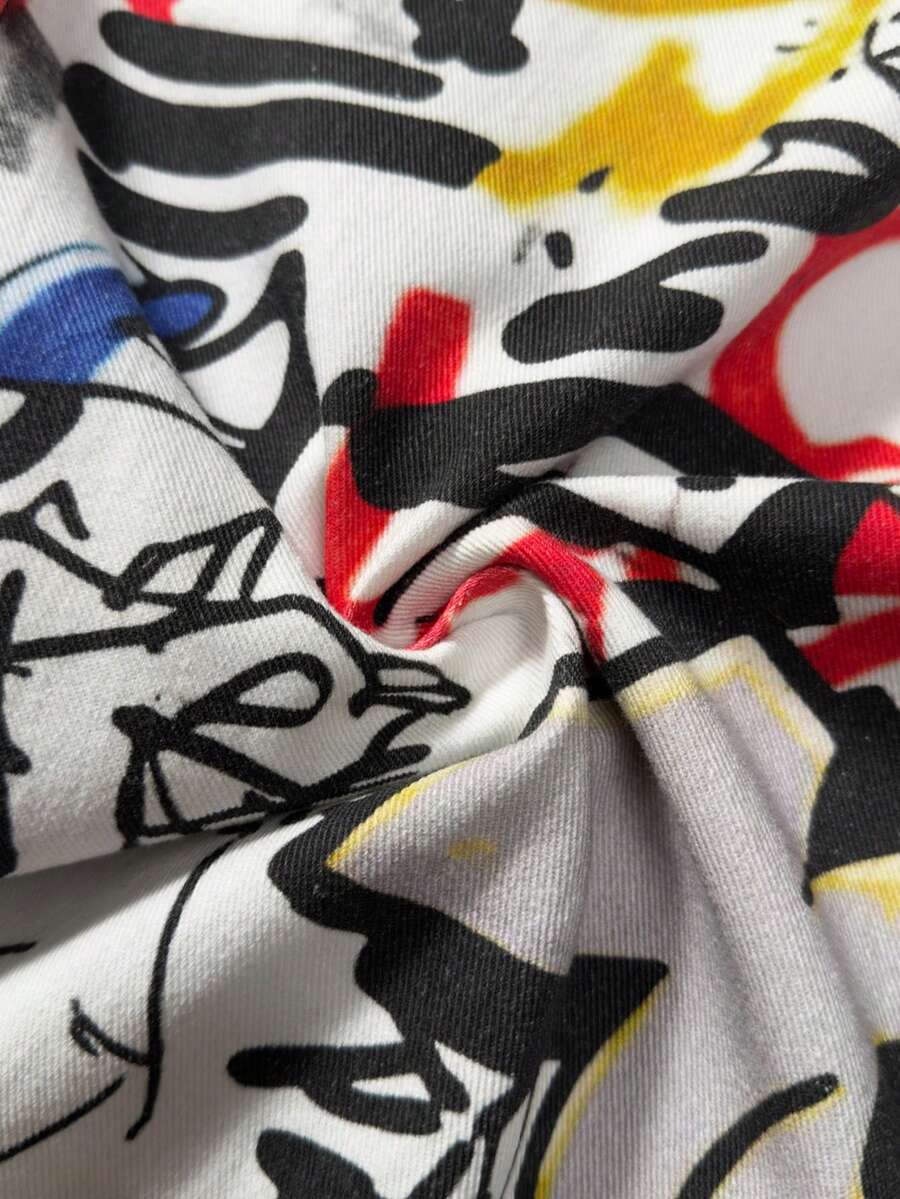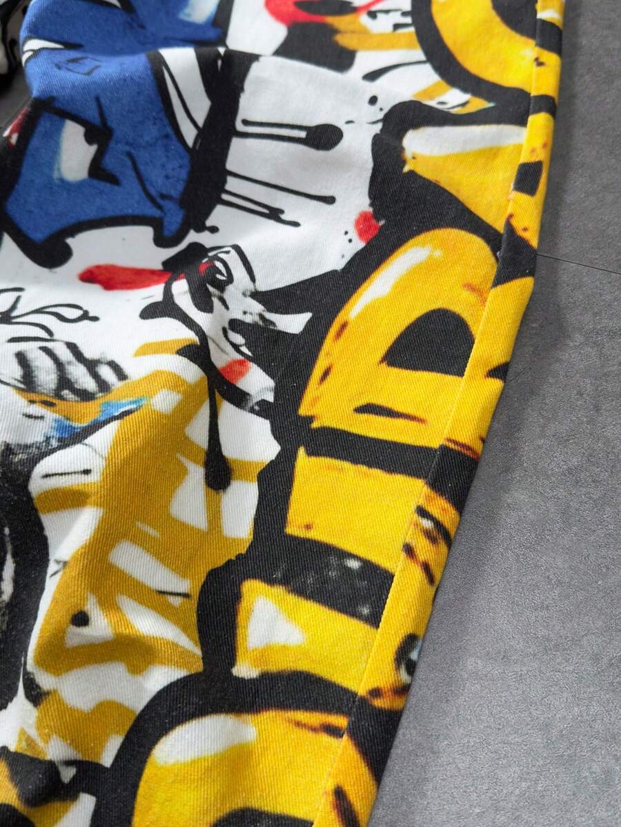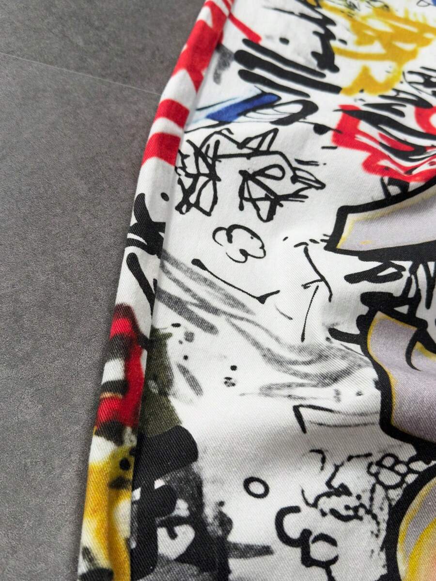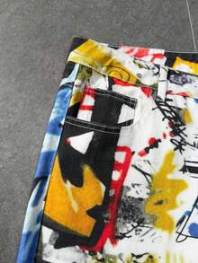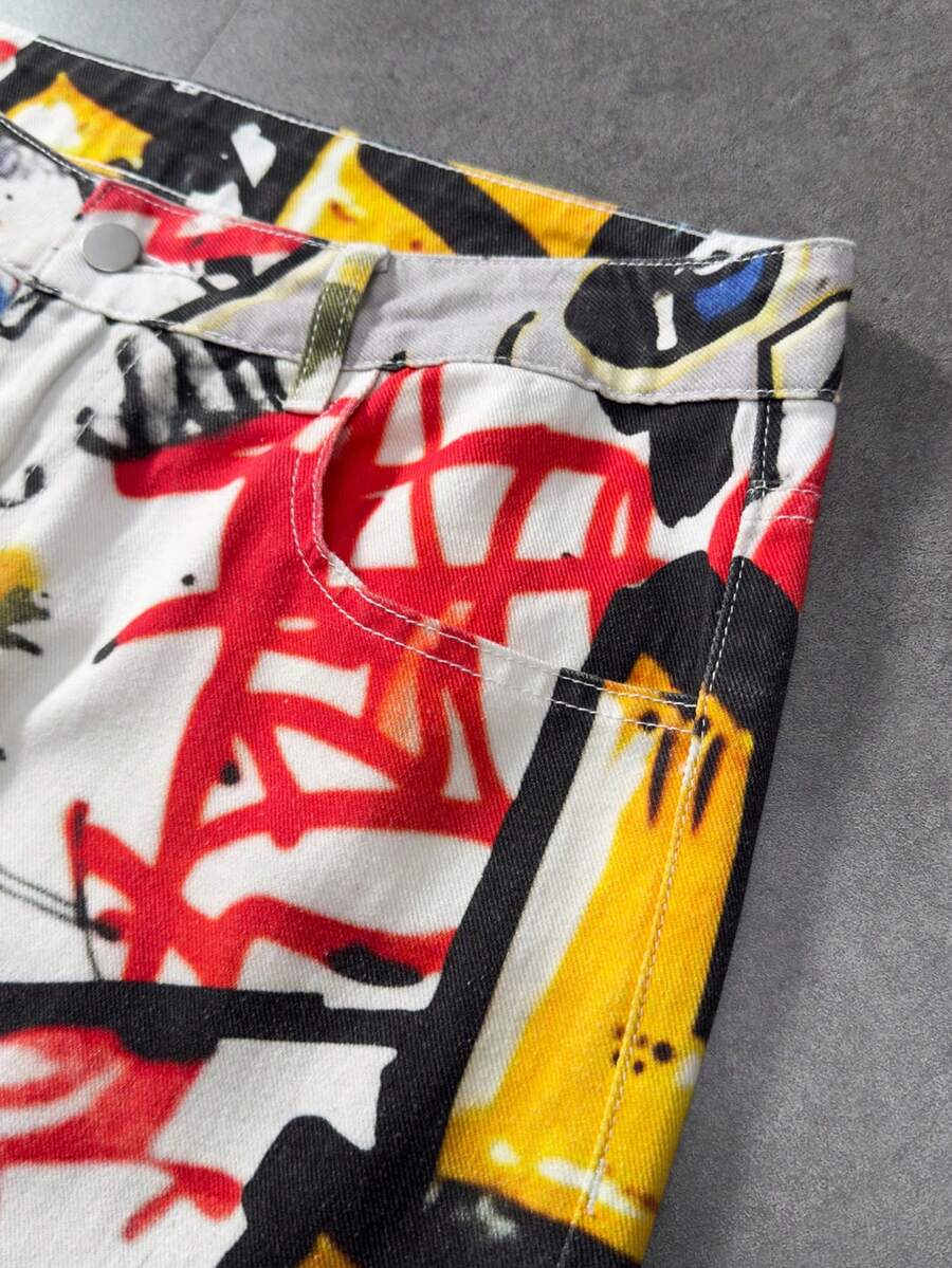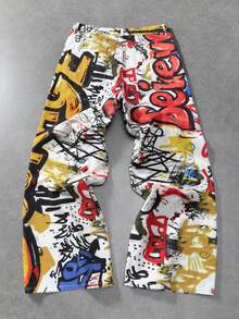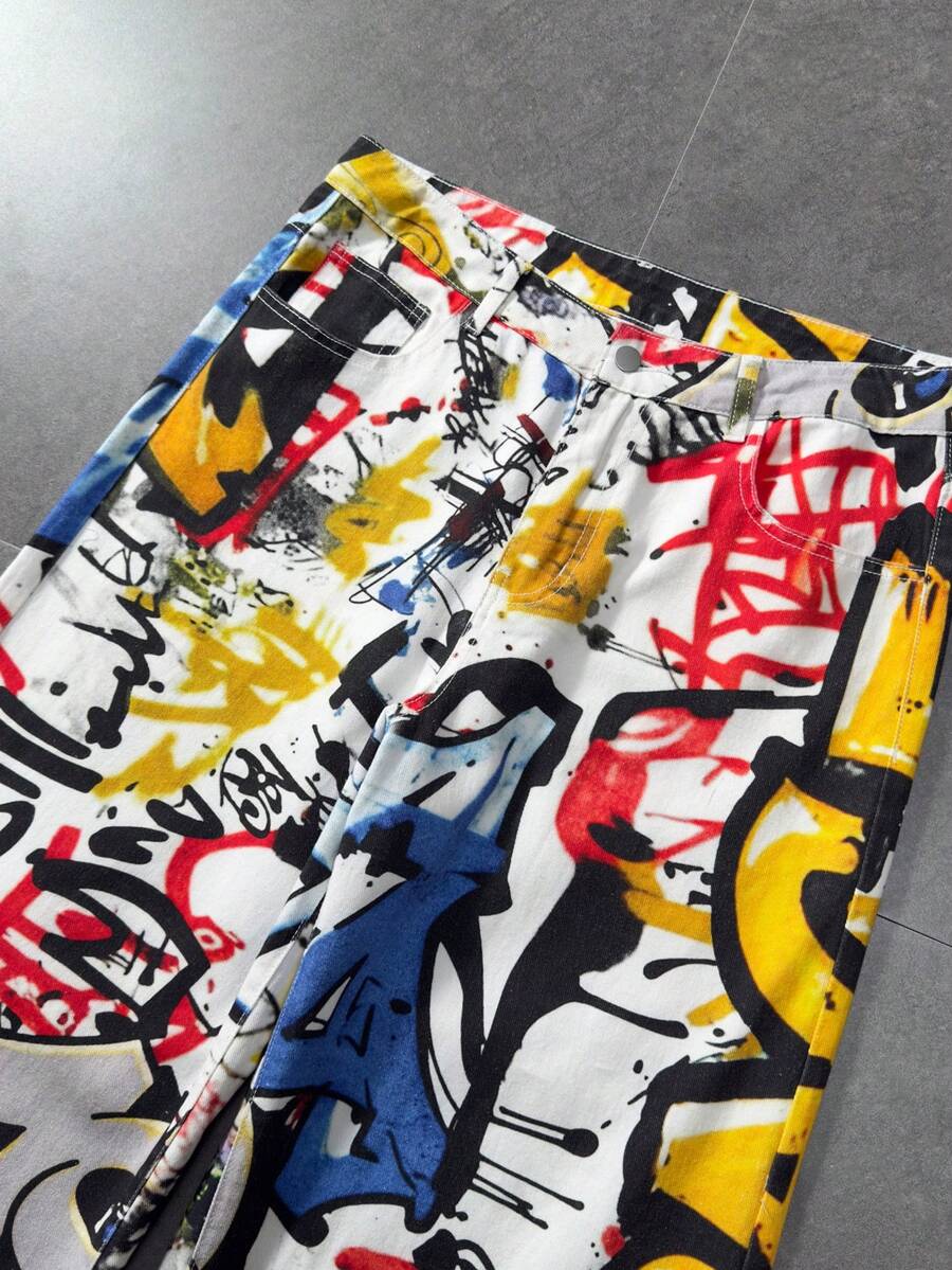Herren Jeans mit weitem Bein und Graffiti-Buchstaben-Muster auf der Tasche, lässig und locker