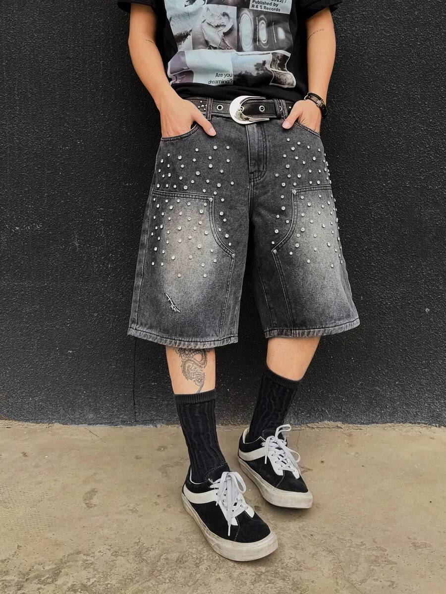 Herren Loose Fit Cargo Shorts mit funkelnden Diamanten