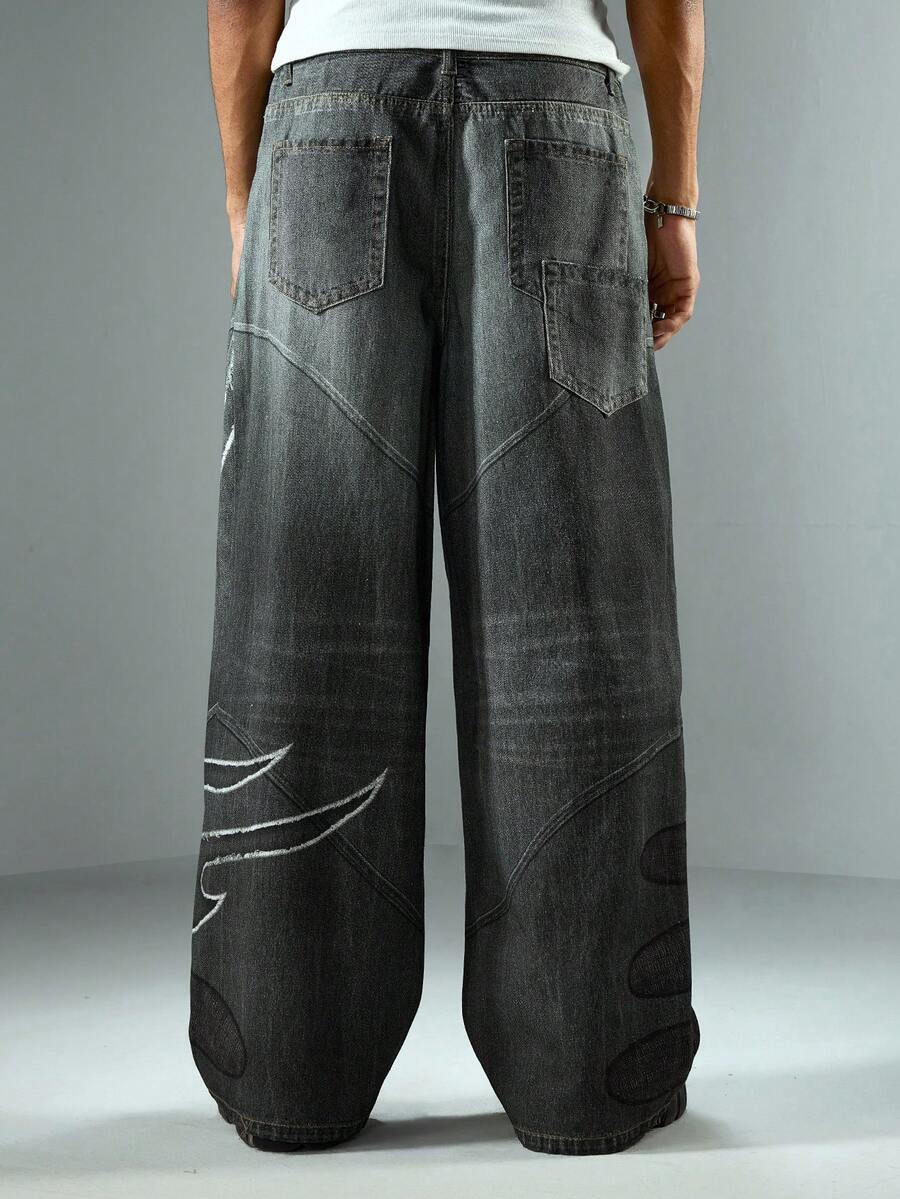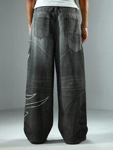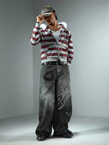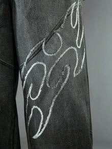 Herren Jeans mit Flammen-Muster, weite Passform mit Tasche und Knopfverschluss