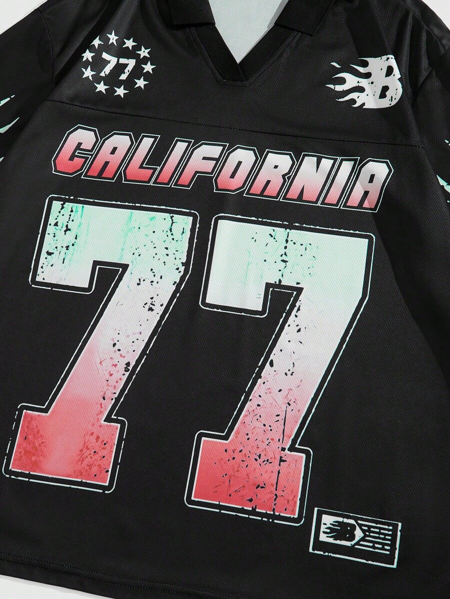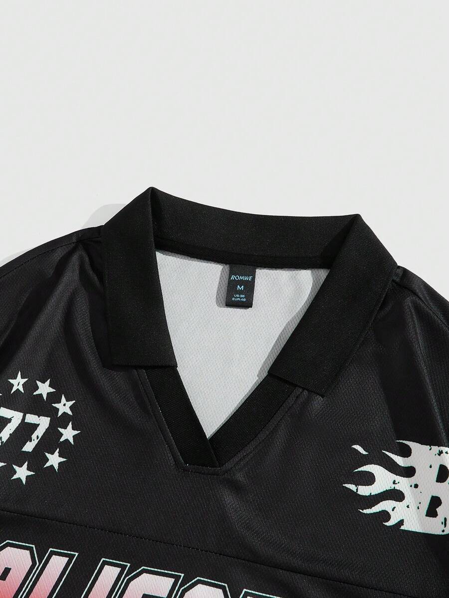 Prep Herren V-Ausschnitt Kurzarm Polo-Shirt mit Buchstaben-Muster, Lässig