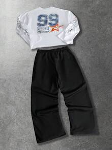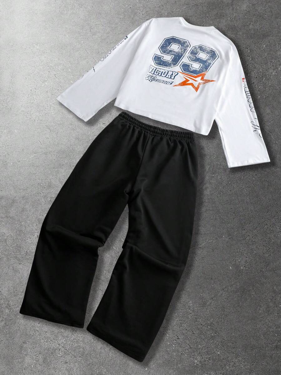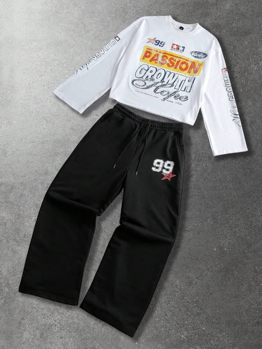 Herren Set aus bedrucktem Rundhals-Langarmoberteil und Jogginghose