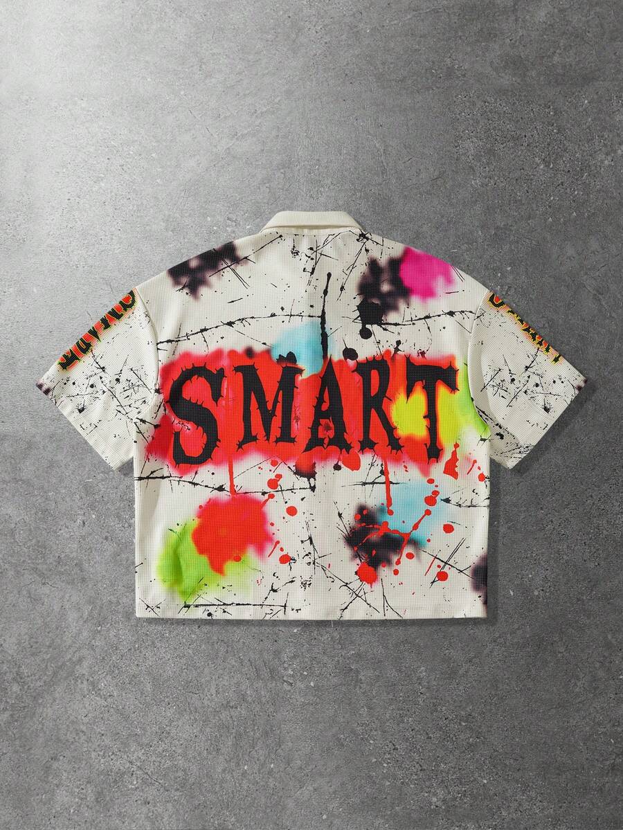 Herren bedrucktes Kurzarmhemd, locker geschnitten