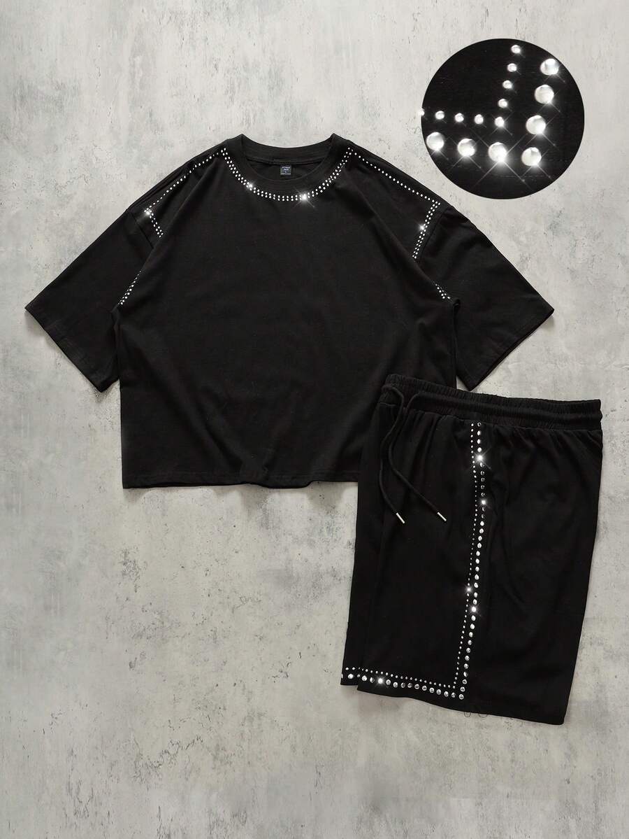 Herren funkelndes Diamant Loose T-Shirt und Shorts Set