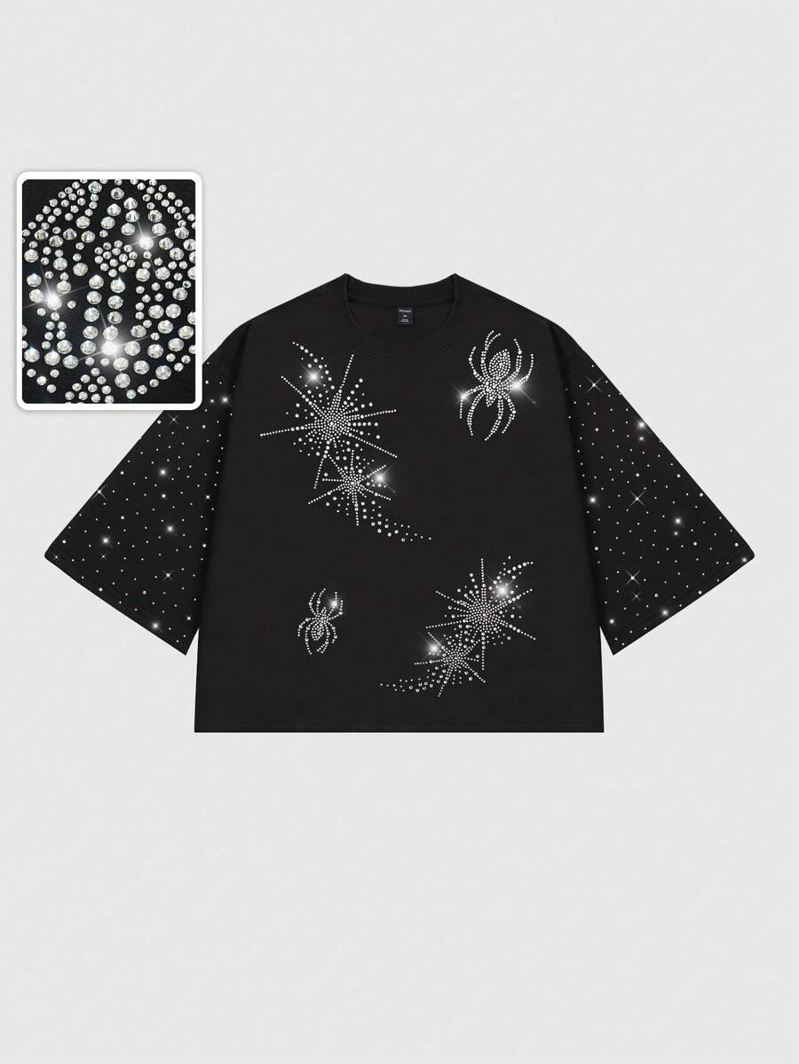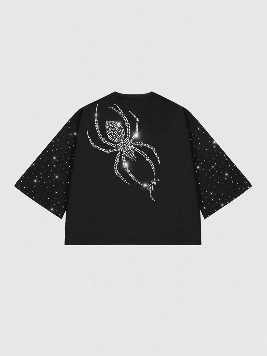 Herren T-Shirt mit 3/4 Ärmeln und funkelndem Diamant-Spinnen-Motiv