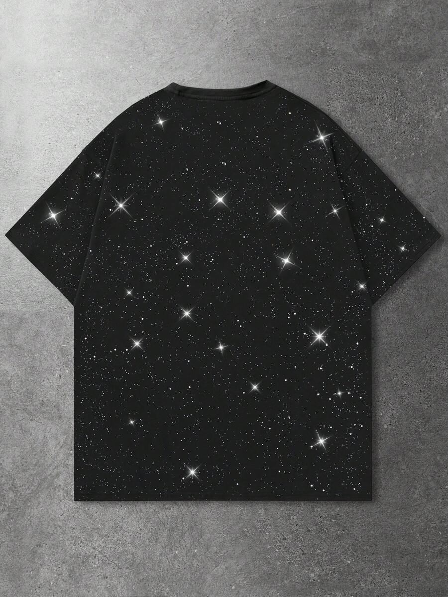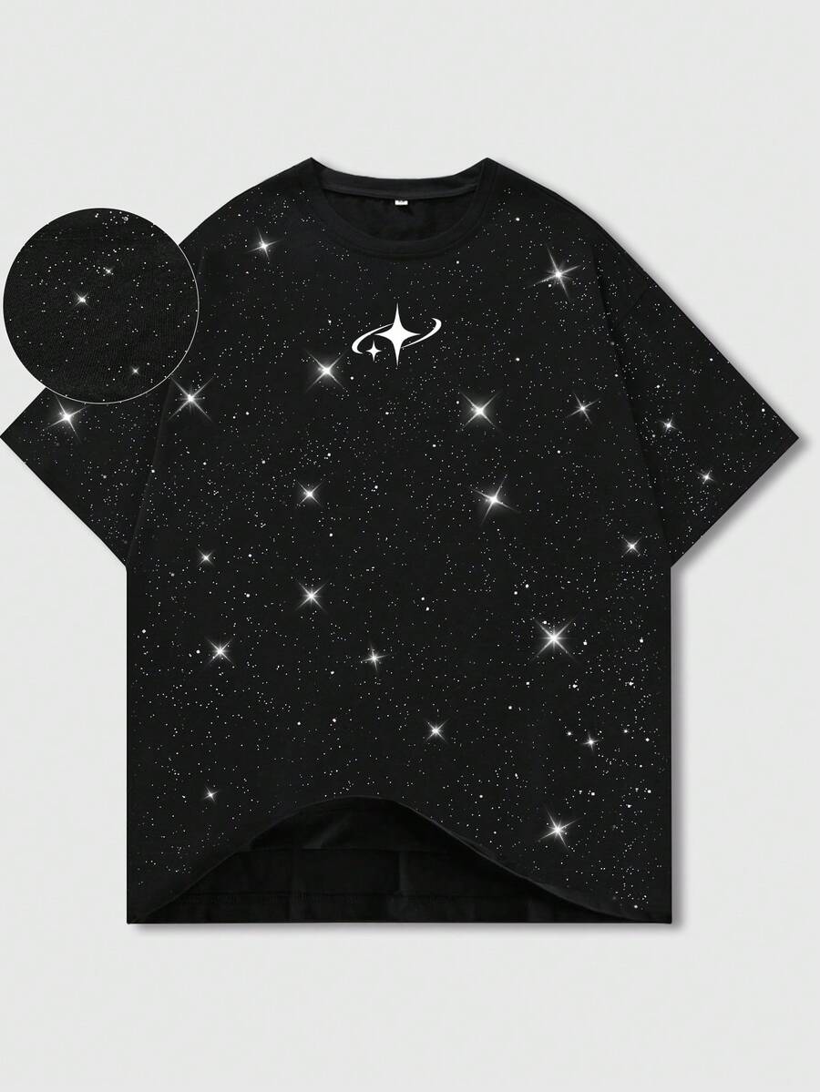 Herren Stern Muster Rundhals Kurzarm Lässig glänzendes T-Shirt